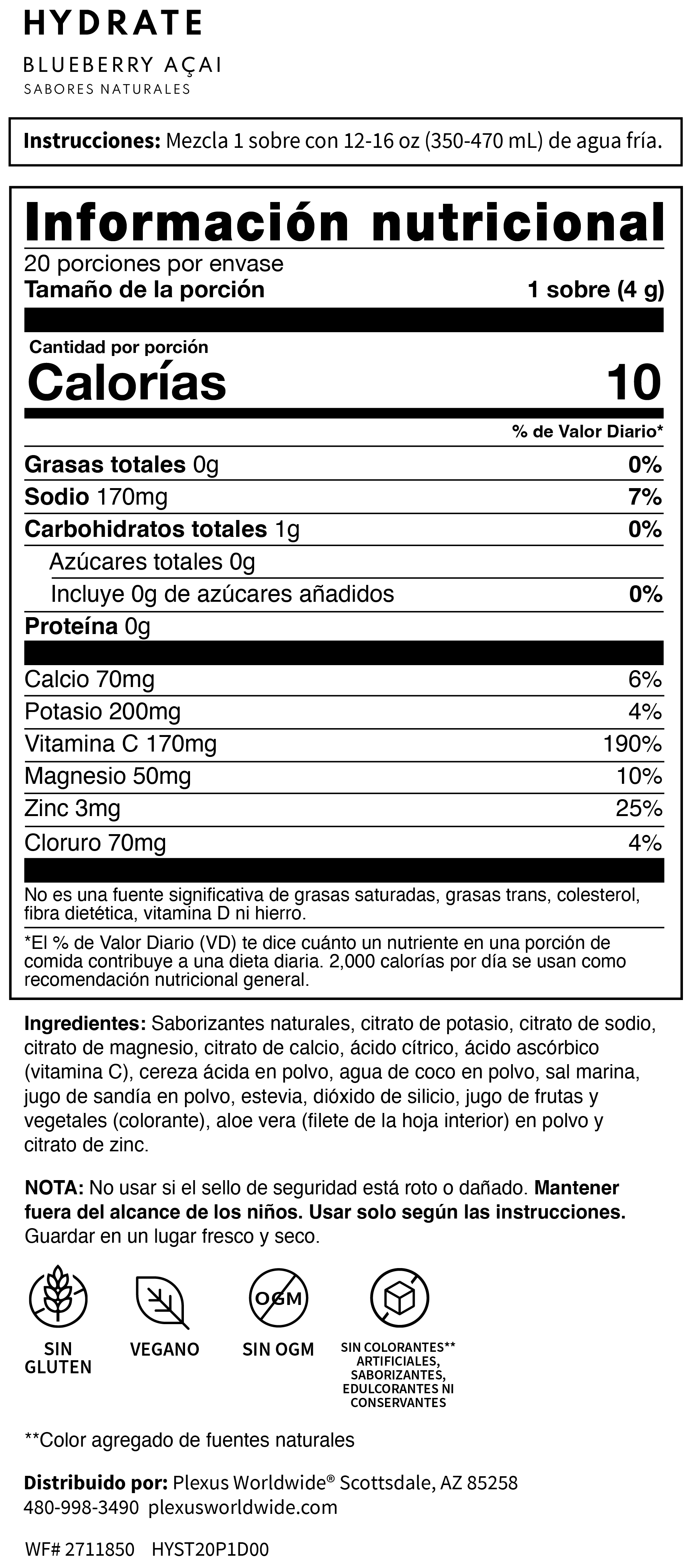Además de disfrutar del refrescante sabor a arándano y acai, es posible que no sientas físicamente una diferencia inmediatamente después de beber Hydrate, pero eso no significa que no esté ayudando a tu cuerpo a reemplazar los electrolitos perdidos por la actividad física o respaldar una hidratación saludable para un bienestar óptimo.